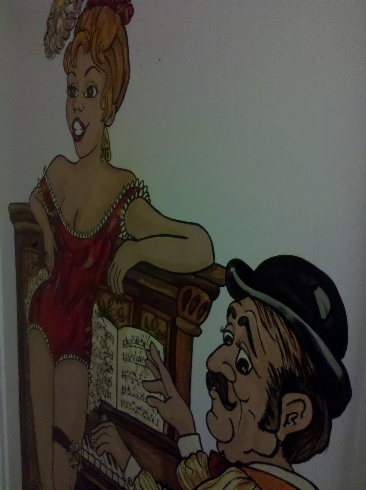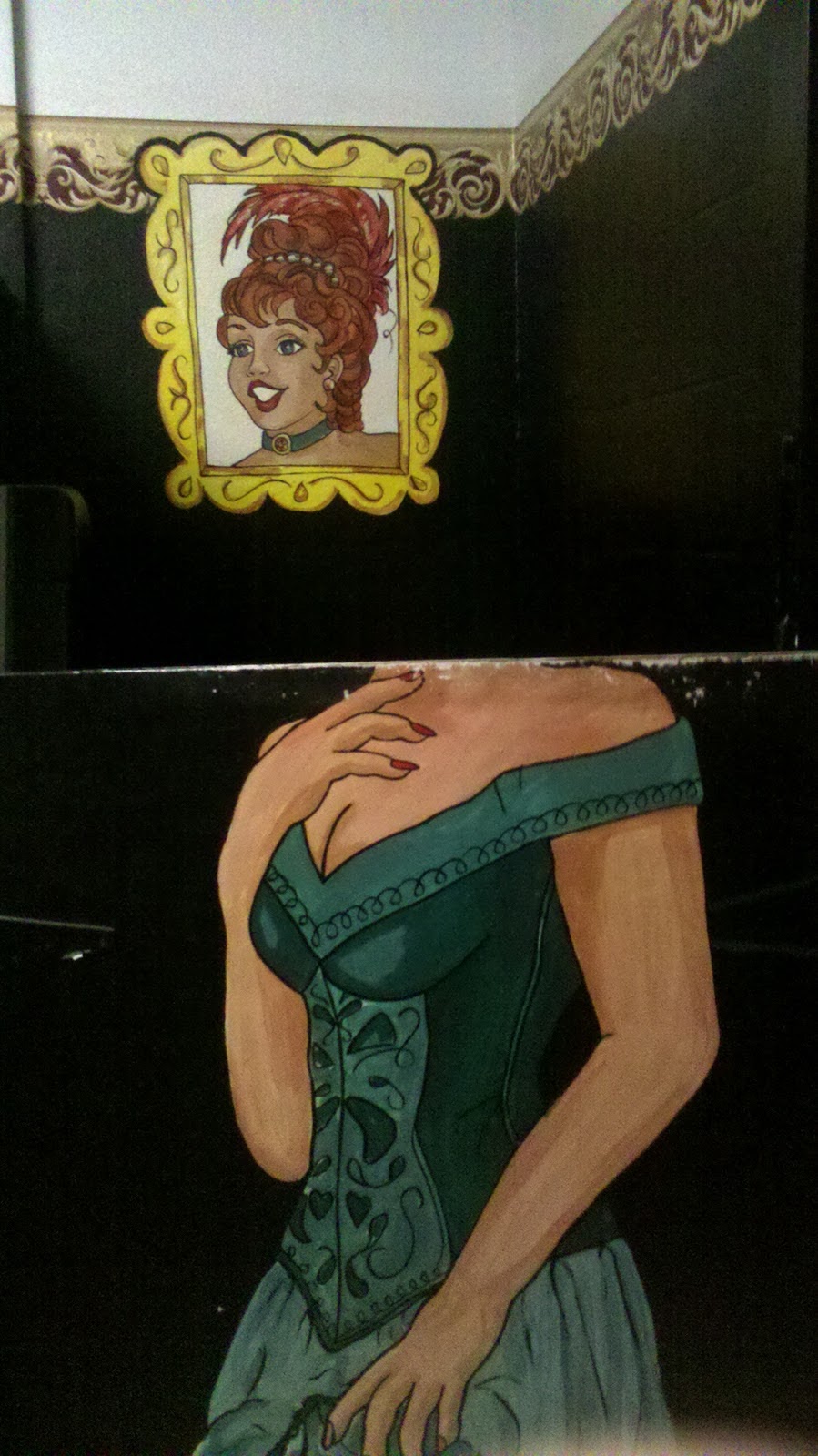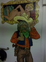 I figured that I would use a post to put the pictures from the men’s bathroom. I made my hubby send them to me so I could post them. 🙂 I love the “naked” woman picture. My hubby loves me so much, thank goodness, and doesn’t mind chasing my whimsy.
